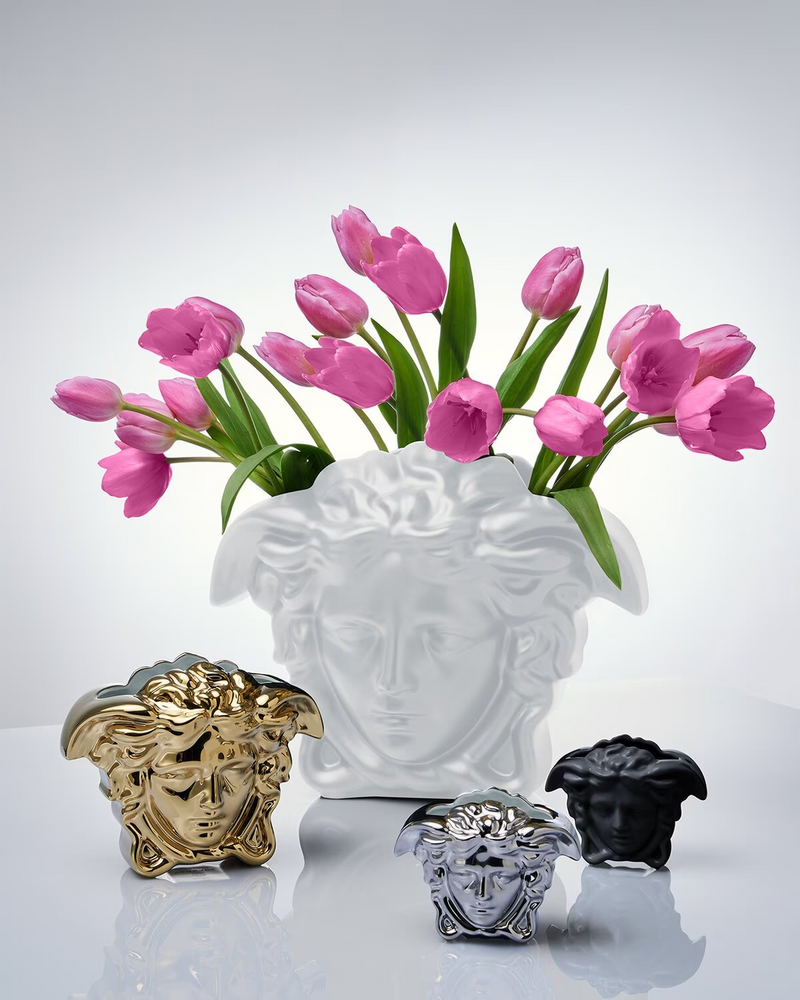 Crafted from the most exceptional quality porcelain, the Medusa Grande features a slit on the top of the mythical woman's head that perfectly fits a bouquet of flowers. The design is featured in a contemporary fuchsia tone.